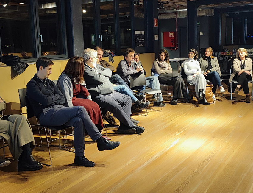 Para recoger este aniversario tan significativo, contamos con una relatoría gráfica en directo, realizada por la ilustradora Maria Calvet, que transformó las palabras, recuerdos, reflexiones y anécdotas que surgieron durante este encuentro en un relato visual colectivo.